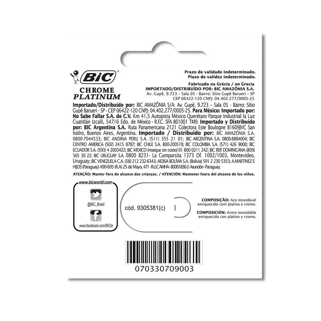 A clássica Lâmina da BIC! A clássica Lâmina de Barbear BIC da linha Chrome Platinum proporciona um barbear suave e eficaz. Possui gume afiado de longa longevidade. É revestida de Platina e Cromo, para um corte suave e rente, sem dificuldades. Ideal para todos, com preferência por um barbear clássico e atemporal. Detalhes: - Para barbear e fazer acabamento em corte de cabelo; - 5 lâminas em aço inoxidável; - Revestida de platina e cromo; - Linha BIC Chrome Platinum;