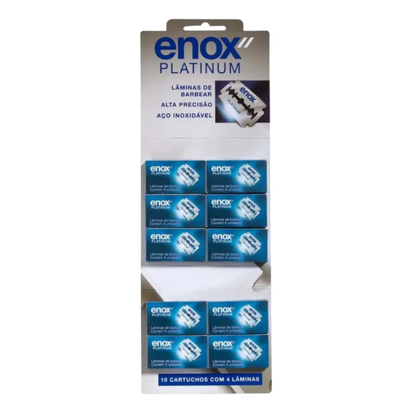 | Lâmina de Barbear Enox Platinum Fio Duplo Aço Inox Kit 40 Unidades ... este produto | R$ 30,49 | — | 4.9/5 | 17 |