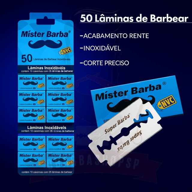 | Lâmina De Barbear Mister Barba Cartela Com 50 Lâminas este produto | R$ 26,90 | — | 4.8/5 | 23 |