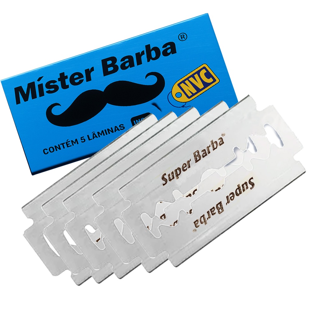 Oarmarinhosp - Virtual Shop Lâmina Mister barba - 50 unidades 1 Cartela com 10 caixinhas com 05 lâminas. Máxima qualidade em lâmina de duplo fio para um barbear mais rente e seguro. Lâmina Descartável Lâmina Mister barba Super Inox é fabricada em aço inoxidável. Indicada para barba, cabelo e tricotomia.