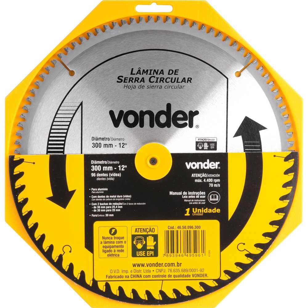 Lâmina de Serra Circular P/alumínio 300x30mm 96 dts VONDER tem frete grátis?