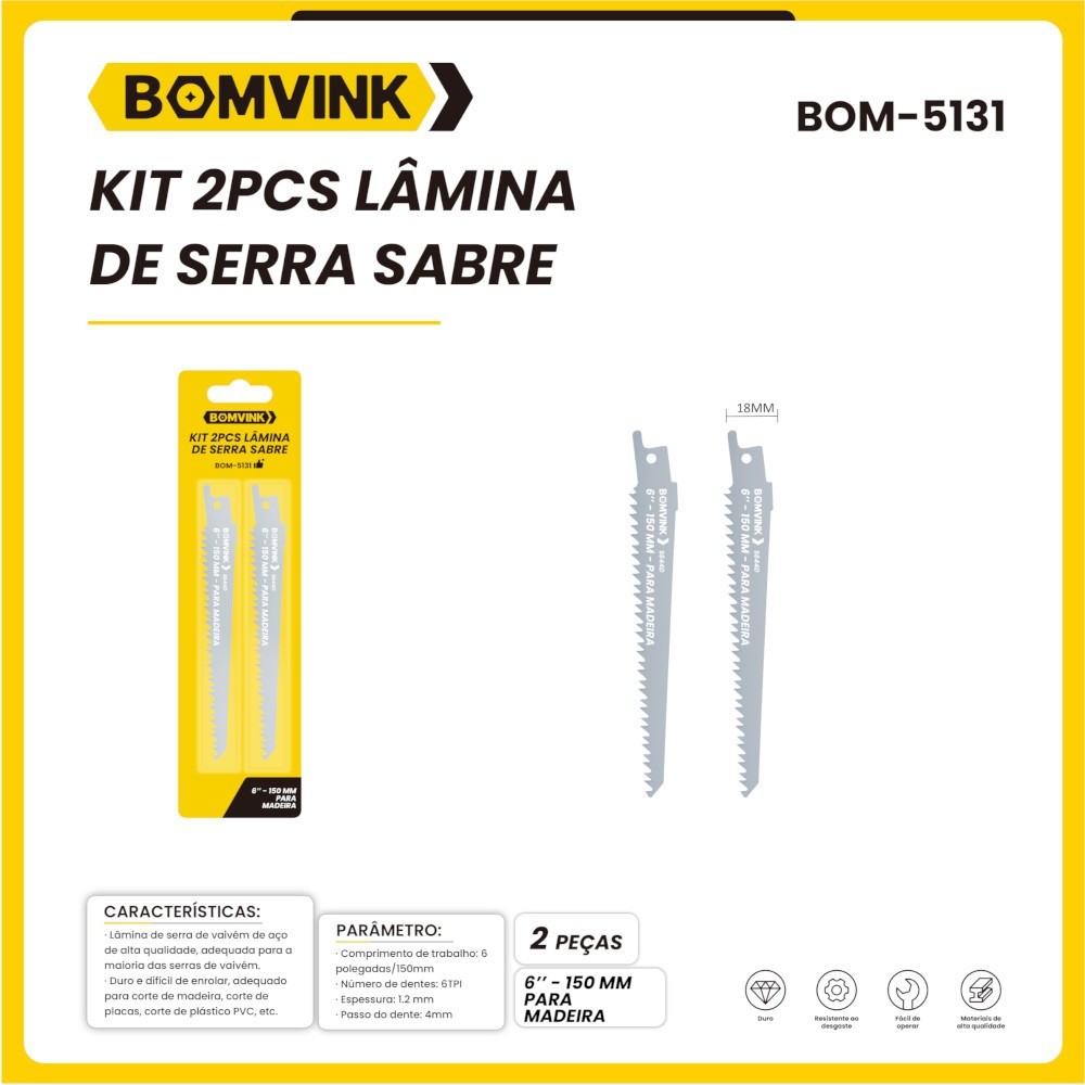 Lâmina de serra sabre 6" para madeira com 2 peças - BOM-5131- Bomvink
