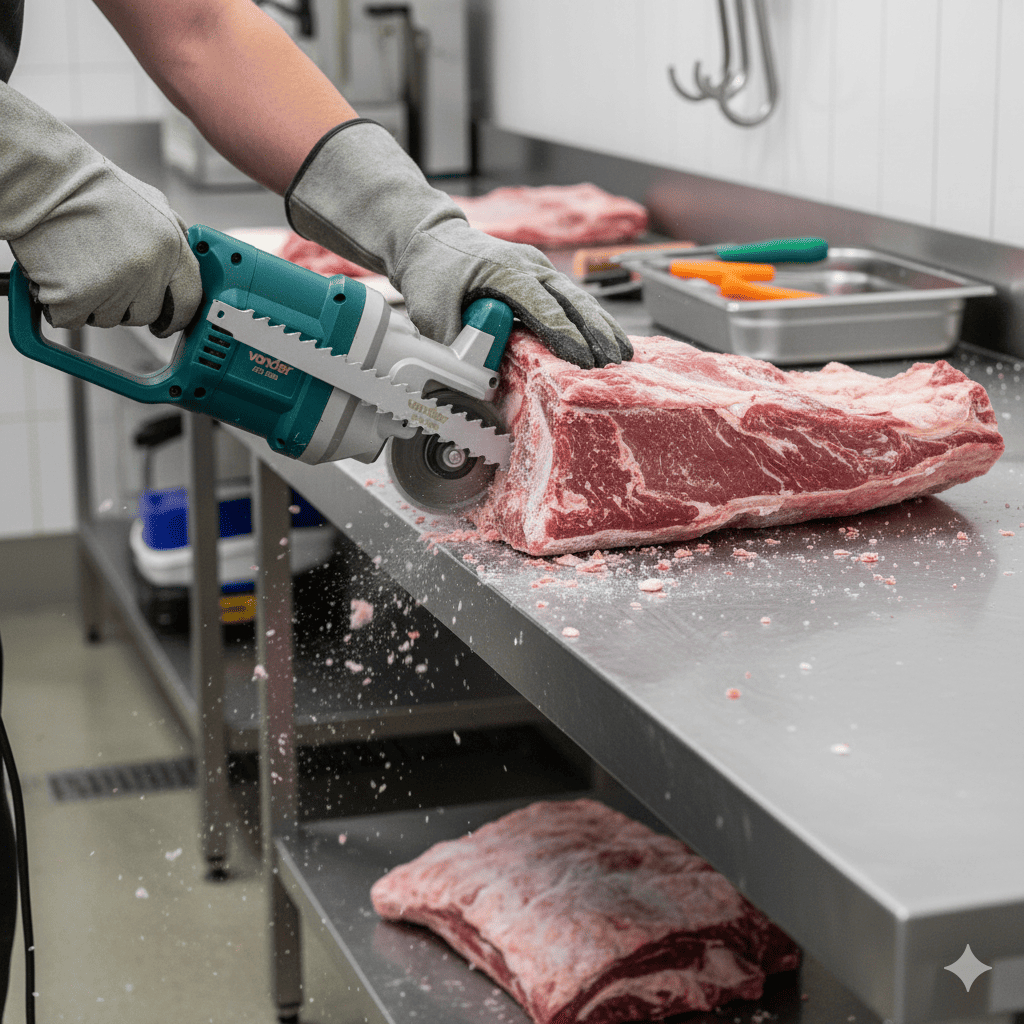 Indicada para utilização em serra sabre para corte de carne e ossos de animais, congelados e descongelados. Fabricada em aço inox, proporciona maior durabilidade. Conteúdo da embalagem: 1 lâmina aço Inox Detalhes Técnicos Comprimento total da lâmina para serra sabre: 300 mm Largura da lâmina para serra sabre: 18,5 mm Espessura: 1,2 mm Nº dentes/pol: 3 dentes Material da lâmina para serra sabre: Aço inox Aplicação da lâmina para serra sabre: Carne e ossos de animais congelados e descongelados Peso: 0,045 kg Garantia legal: 90 dias