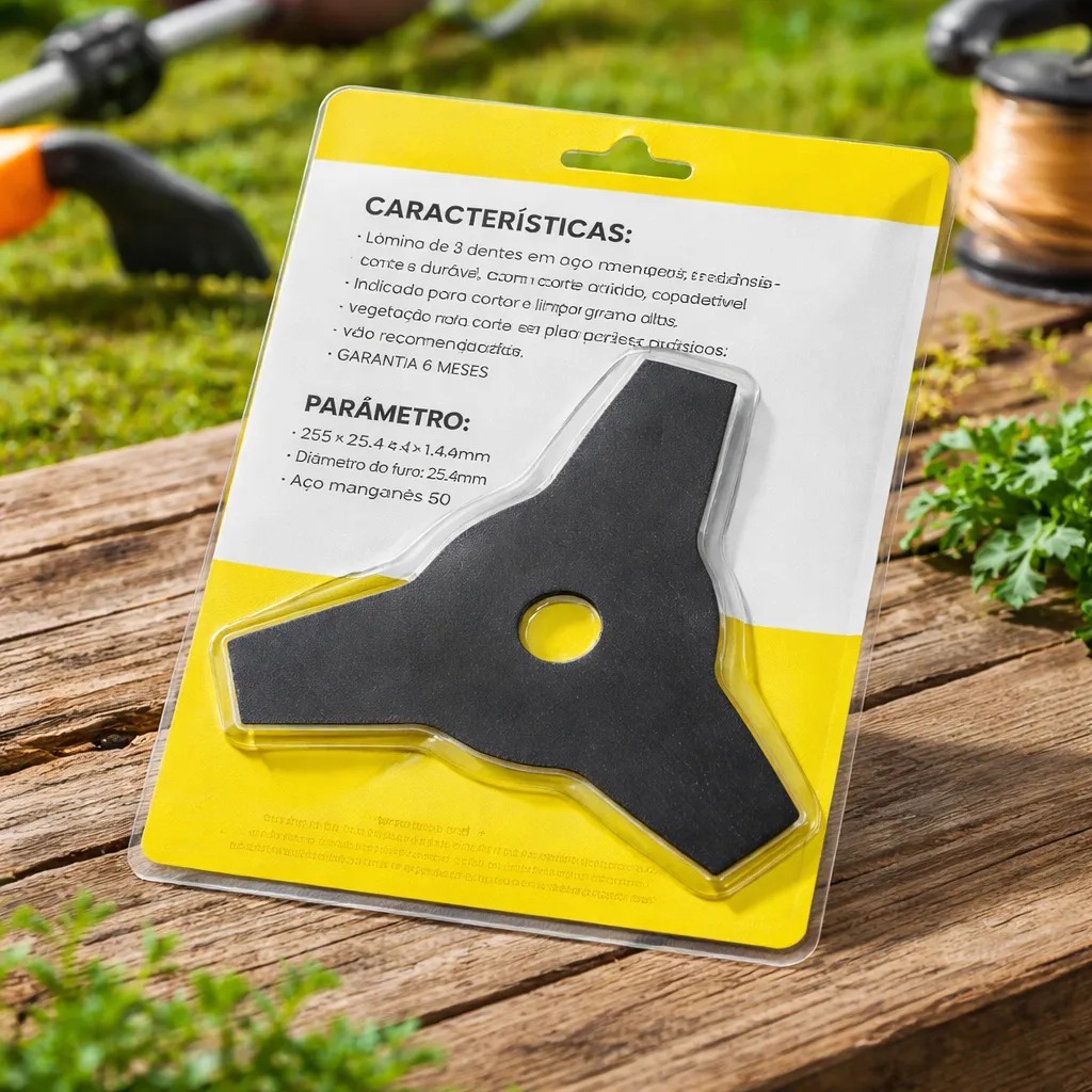 Seja bem vindo a RR Casa e Construção. Somos especializados em itens para sua Casa e Ferramentas no geral. Todos nossos envios são feitos diariamente, trazendo conforto aos nossos clientes e satisfação aos prazos de entrega. Todos nossos produtos são criteriosamente testados para garantia do pleno funcionamento e trazem maior segurança ao seu uso, independente do ambiente de aplicação. Dados Técnicos: LÂMINA PARA ROÇADEIRA 3 PONTAS MARCA: BOMVINK Indicada para uso exclusivo em máquinas roçadeiras para o corte de vegetação, grama, mato e capim em casas de campo, sítios, chácaras, fazendas, empreiteiras, reflorestamento entre outros. Características: - Fabricado em aço manganês, menor desgaste e maior resistência. (mesmo aço utilizado na fabricação de molas de caminhão) - Tratamento térmico total - Pintura eletrostática preta de alta resistência Dimensões: - Comprimento 255mm x 25,4mm x 1,4mm - Furo central 25.4mm - Espessura 1,4mm - Material: Aço Manganes 50