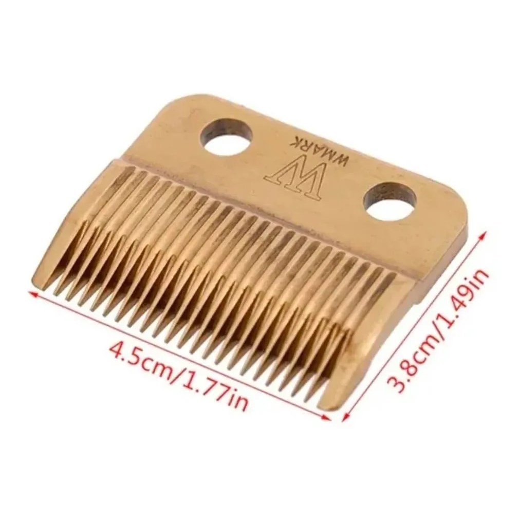 Lâmina taper para máquinas de corte. Parte superior da lâmina feita de Aço qual recebe um banho de resina dourada, que evita o desgaste e oxidação com o passar do tempo. Parte inferior de Aço. Modelos compatíveis: Magic Clip, Whal super taper, super taper II, taper 2000, Pro Basic, Icon, 5-Star Senior. Modelo: D16 DOURADO O pacote inclui: 1 Lâmina superior Aço prata 1 Lâmina inferior Aço prata 2 Parafusos