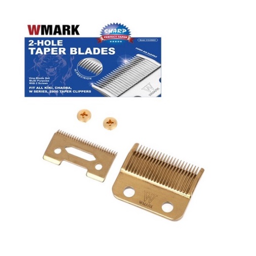Lamina taper para maquinas de corte. Parte superior da lamina feita de Aco qual recebe um banho de resina dourada, que evita o desgaste e oxidacao com o passar do tempo. Parte inferior de Aco. Modelos compativeis: Magic Clip, Whal super taper, super taper II, taper 2000, Pro Basic, Icon, 5-Star Senior. Modelo: D16 O pacote inclui: 1 Lamina superior Aco preto 1 Lamina inferior Aco preto 2 Parafusos
