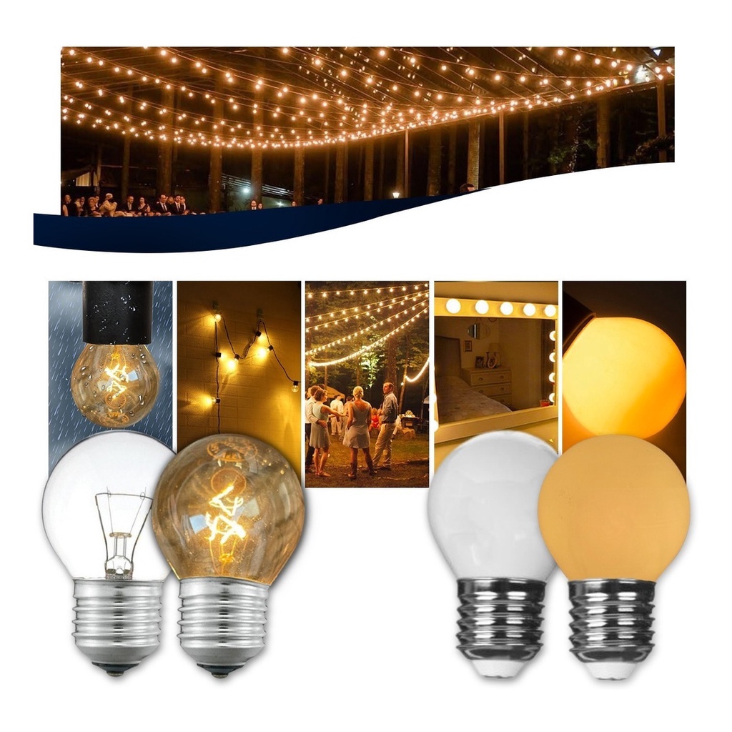 Lampada 15w Bolinha Luz Amarela Incandescente Varal Luzes Cordão De Luzes Area Externa Eventos Rede
