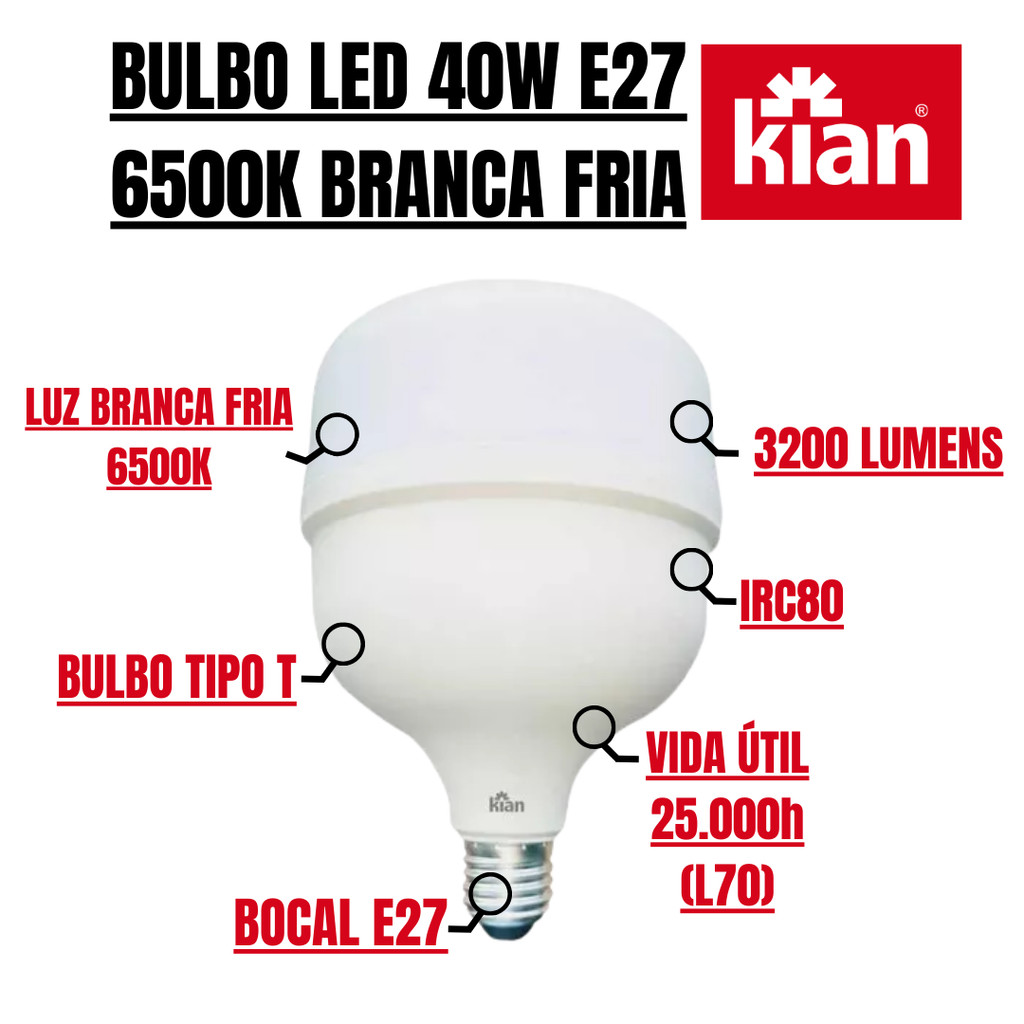 Lâmpada Bulbo Led 40w Branca Fria 6500k E27 Kian
