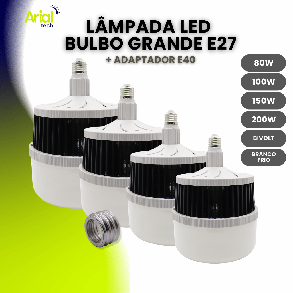 Lâmpada Bulbo Led 80w, 100w, 150w e 200w Alta Potência Soquete E27 E40 Luz Branco Frio Bivolt 110v|220v
