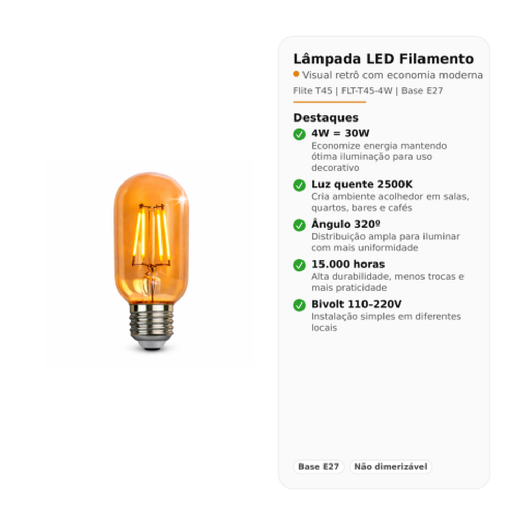 Lampada de Filamento LED Flite T45, 4W, FLT-T45-4W