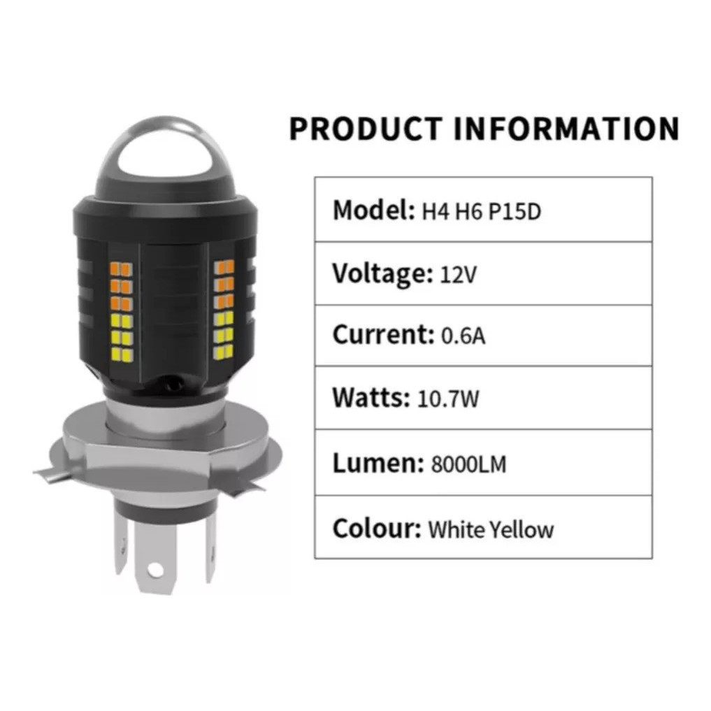 Lâmpada De Projeção LED H4 De 6500K Com Iluminação De 360° Para Motocicletas E Carros