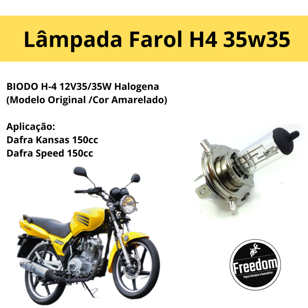 | Lâmpada Farol H4 Dafra Kansas 150cc Dafra Speed 150cc Halogena este produto | R$ 16,92 | 6% | 4.9/5 | — |