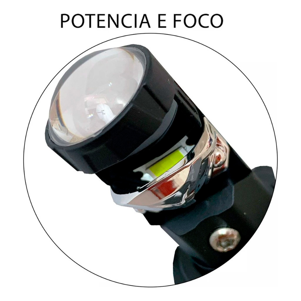 Lâmpada Farol Projetor Canhão LED Elíptico Nano H4 para Moto 35W 5000LM 6500K Luz Branca ShockLight