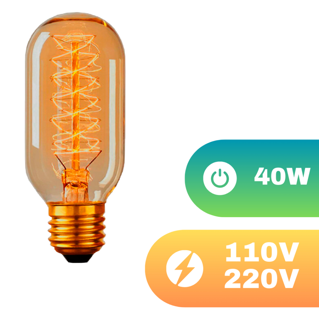 Lâmpada Filamento Carbono T45 40W E27 LUZ QUENTE (AMARELO) Âmbar 110V~220V