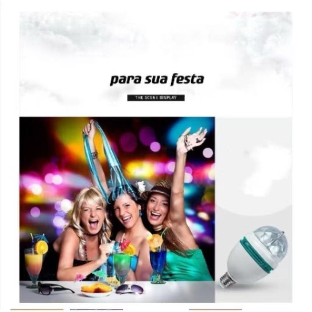 Máquina Criadora de Ambiente de Festa! Lâmpada de Bola Mágica Giratória LED, Acenda a Noite de Festa com um Toque✨ Quer transformar sua festa ou encontro em um cenário de conto de fadas em segundos? Esta Lâmpada de Bola Mágica Giratória LED, com luzes vibrantes e rotação inteligente, cria o clima perfeito e faz você ser o "líder do clima" no feed do Instagram! 🔥 Destaques Principais: Clima no Máximo Rotação de 360° + Efeitos de Luz Colorida, Cria palco imersivo Com esfera de cristal giratória integrada, ao ligar, inicia a rotação automática de 360°. Combina gradiente de cores (vermelho, verde, azul, roxo e mais), luzes caem como meteoros, cobertura parede e teto, criando atmosfera de "discoteca privada" ou "estrela magica". Fotos para o Instagram saem com filtro natural! Plug and Play, Compatível com Diversos Cenários Conector Universal: Rosca E27, encaixa em lampadas domésticas, tripés, suportes de luz de fotografia – instalação simples, sem complicações. Cenários Versáteis: Aniversários, encontros em casa, pique-nique com dança, karaokê no dormitório... Basta tomada ou fonte de energia portátil para transformar o clima. Até substitui luzes tradicionais em bares e KTV! 📏 Pequeno Tamanho, Grande Potência Compacto: Diâmetro 8cm × Altura 15cm, não ocupa espaço, fácil de guardar e levar. Econômico e Brilhante: Potência de 5W, econômico e durável. Luz suave, não cega –Use horas a fio sem preocupações com conta de luz. Resistente: Capa ABS + lente de cristal, anti - queda e resistente. A festa pode durar até amanhecer, e ele aguenta! 🎉 Resultados Reais: Clima Transborda da Tela Encontro em Casa: Luz quente + gradiente colorido, mesa se torna ponto romântico para fotos. Comida e sorrisos ganham vida! Dança com Amigos: Desligue as luzes principais! Rotação de 360° acompanha a música, experiência de dança dobra de diversão. Acampamento ao Ar Livre: Fixe na vara da tenda, círculo colorido sob as estrelas transforma acampamento de "sobrevivência na selva" em "discoteca na selva"! Seja para adicionar ceremonial à rotina ou preparar uma festa inesquecível, esta "bola mágica" controla o clima com facilidade! Por poucos reais, a felicidade é sua. Não hesite em encomendar – Na próxima festa, você será quem mais sabe criar o clima!