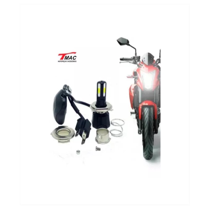 LAMPADA H4 42W 4600LUMENS COM REATOR 6000 A 6500K. CODIGO: LED007. APLICACOES: ESSE MODELO DE LAMPADA E COMPATIVEL COM TODOS OS MODELOS DE MOTO QUE POSSUEM ENCAIXE H4 / M5. INFORMACOES TECNICAS: - MARCA: TMAC; OUTRAS MARCAS. - POTENCIA DE SAIDA: 42W. - EFICIENCIA LUMINOSA: 4600 LUMENS. - ANGULO DE TRABALHO 360. - TENSAO AC/DC: 9-18V. CARACTERISTICAS: - COR: LUZ BRANCA. - A LAMPADA SUPER LED H4 POSSUI UM GRANDE RAIO DE ALCANCE E LUMINOSIDADE. - COMPOSTA POR 4 LEDS. - ENCAIXE H4 / M5 (PARA SOQUETE MODELO M5 E NECESSARIO INSTALAR OS 3 FIOS DA LAMPADA DIRETO NOS 3 FIOS DO SOQUETE). - PODE CHEGAR A MAIS DE 30.000 HORAS DE USO SEM PERDER A LUMINOSIDADE. ------------------------------------------------------------------------------------------------------------------ --- FOTOS ILUSTRATIVAS -- FOTOS ILUSTRATIVAS -- FOTOS ILUSTRATIVAS --- --- FOTOS ILUSTRATIVAS -- FOTOS ILUSTRATIVAS -- FOTOS ILUSTRATIVAS --- ------------------------------------------------------------------------------------------------------------------ PRODUZIDO COM MELHORES EQUIPAMENTOS GARANTINDO SEGURANCA E DURABILIDADE, OFERECENDO O MELHOR CUSTO BENEFICIO, UNINDO QUALIDADE E EFICIENCIA NA SUA UTILIDADE. - CONFECCIONADO COM A MELHOR MATERIA-PRIMA; - OTIMO ACABAMENTO, PROPORCIONANDO UMA INSTALACAO SEM ADAPTACOES.
