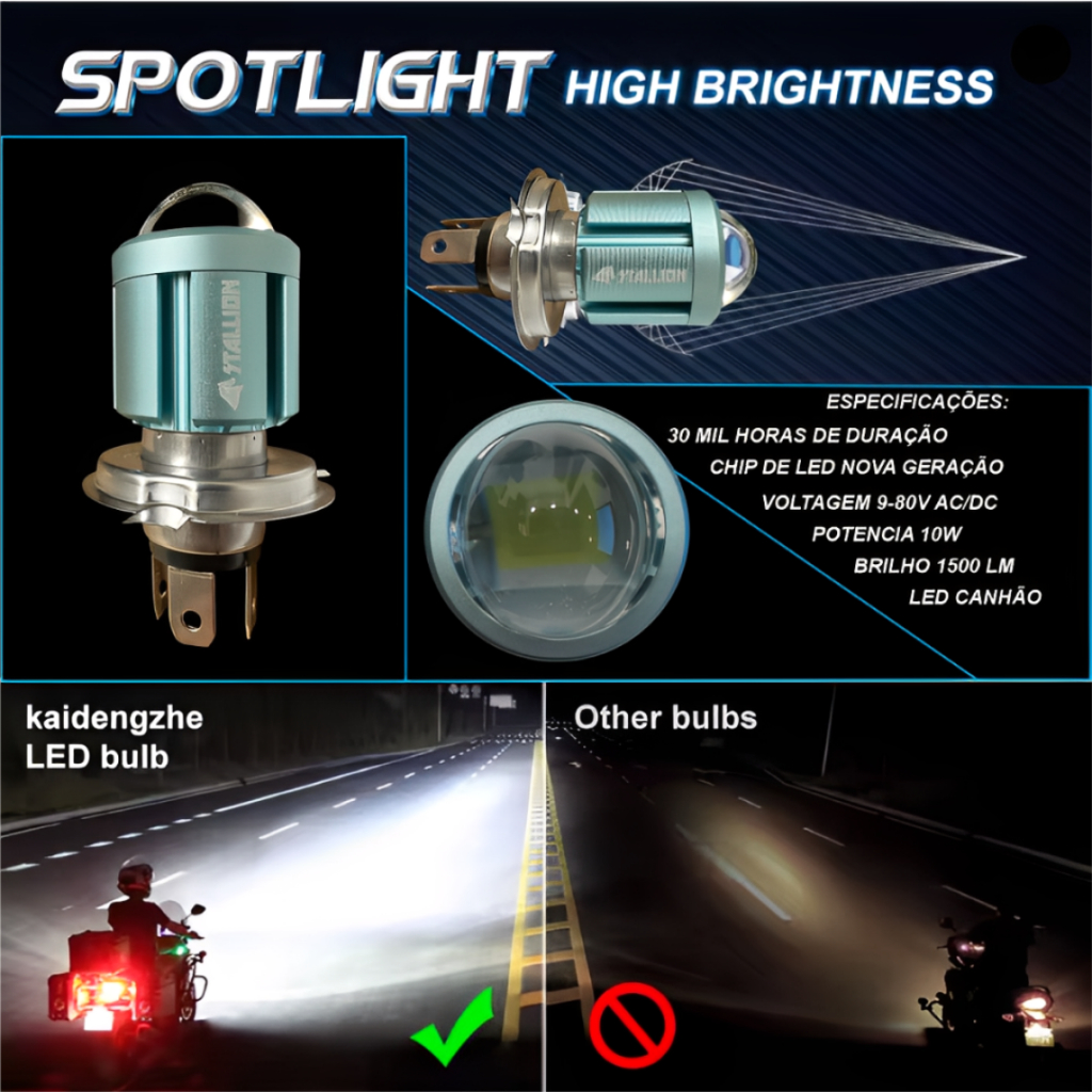 Lâmpada Farol LED H4 12V/10W 6500K Canhão Laser Melhore a visibilidade e o estilo do seu veículo com a Lâmpada Farol LED H4 Canhão Laser. Projetada com tecnologia de ponta, ela oferece iluminação potente, foco preciso e maior segurança em diferentes condições de uso. ESCOLHA A QUANTIDADE DESEJADA EM VARIAÇÕES DO ANUNCIO, TEMOS: 1 UNIDADE; E KIT 2 UNIDADES Compatibilidade Compatível com veículos que utilizam o modelo H4 no farol principal, incluindo: Motos Carros Caminhonetes Vans Principais Características Farol alto com luz branca fria (6500K), ideal para visibilidade em longas distâncias Lente projetora tipo canhão (óptico estilo "bico de peixe") para foco de luz avançado Chip de LED de nova geração Visual moderno com excelente desempenho em iluminação Upgrade profissional com fácil instalação Especificações Técnicas Modelo: LED H4 CANHÃO Tipo de lente: Projetor frontal com curvatura para melhor foco de luz Potência: 10W Tensão: 9V a 80V AC/DC (funciona em 12V) Fluxo luminoso: 1500 lumens Cor da luz: Branco frio (6500K) Material: Alumínio de alta resistência com dissipador de calor integrado Refrigeração: Sistema passivo (sem ventoinha) Compatível com o sistema original da moto Informações Adicionais Produto novo Acompanha nota fiscal Envio imediato Garantia do vendedor: 1 mês