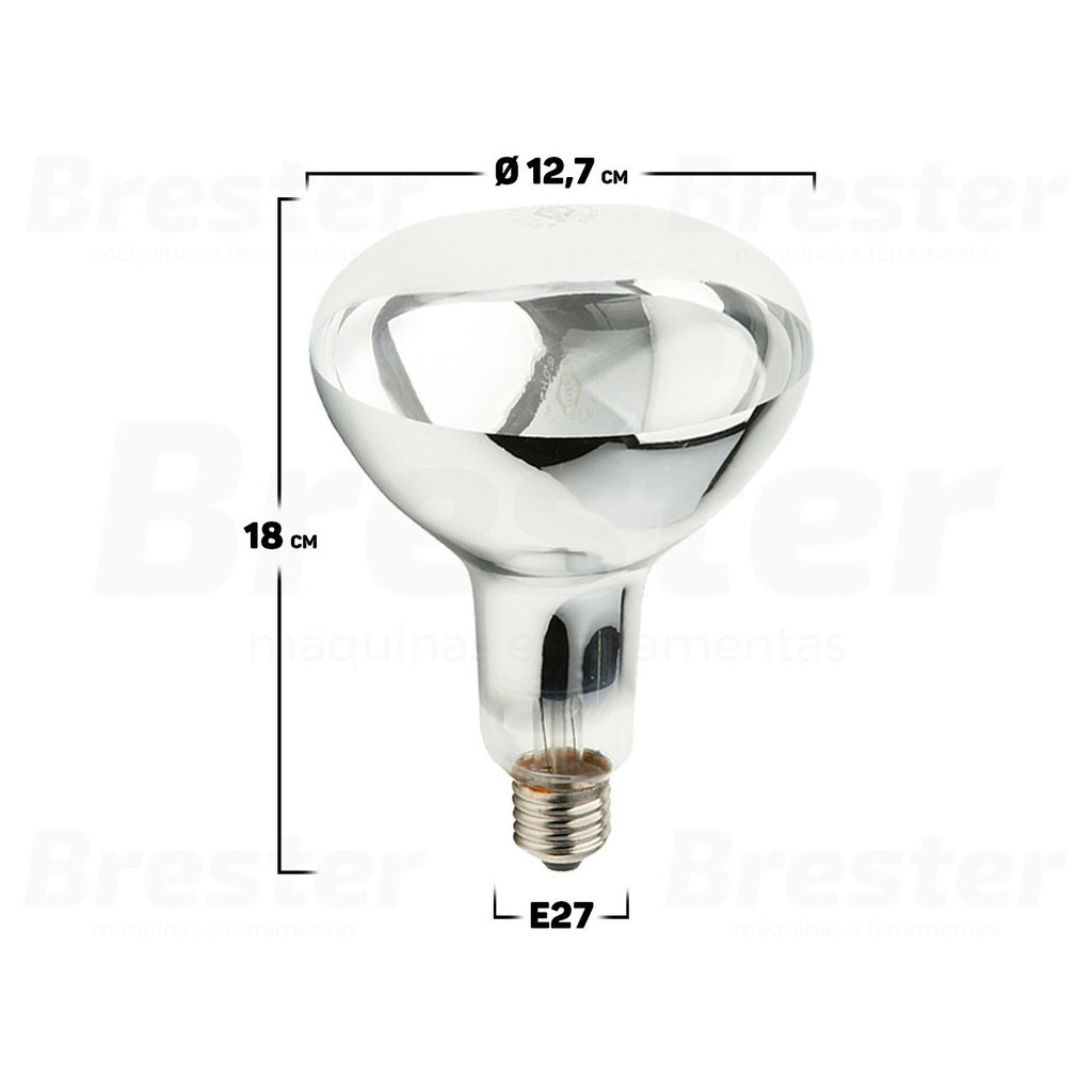 Lâmpada Infravermelha Para Secagem Brasfort Sabemos que o tempo de secagem é um dos grandes desafios na pintura e acabamento de superfícies. O processo pode ser demorado e comprometer a produtividade. A Lâmpada Infravermelha Para Secagem Brasfort é a solução ideal para quem deseja acelerar esse processo de forma eficaz, economizando tempo e garantindo um acabamento perfeito. Características: > Calor dirigido; > Bulbo de vidro espelhado e soquete de material não ferroso; > Ideal para estufas, secagem de tinta, desidratação de alimentos, criação de animais, entre outros. Especificações Técnicas: > Potência: 250W; > Possui soquete E27; > Formato: bombillo; > Cor da luz: branco quente; > Tecnologia de iluminação: infravermelho. - Marca: Brasfort - Garantia: 90 dias contra defeitos de fabricação Vantagens de comprar na Brester: - Produto a pronta entrega. - Produto novo, com garantia de fábrica. - Nota fiscal para Pessoa Física e Pessoa Jurídica.