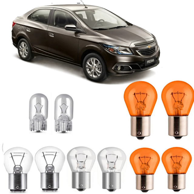 Lâmpada Lanterna Traseira Seta Ré Freio Prisma 2006 Até 2018 ATENÇÃO: Antes da compra confirme se os encaixes (Pino) das lâmpadas é a mesma que você precisa, pois alguns poucos modelos usam outros encaixe. Informações Técnicas do produto: • Lâmpada de Sinalização • Base Soquete: BAU15s • Tensão de Operação: 12V • Potência de Saída: 21W • Base de Encaixe Metálica com 1 Polo e Trava Diagonal com Pinos Transversais • Excelente Qualidade • Longa Vida Útil • Excelente Iluminação Contem: 2 - Lâmpadas de (2 Polo) Transparente ( Lanterna e Freio ) 2 - Lâmpadas T10 (Lanterna Dianteira) 4 - Lâmpadas de (1 Polo) Âmbar ( Seta) 2 - Lâmpadas 1 Polo Transparente ( Ré ) Garantia: 3 Meses Garantia contra defeitos de fabricação Imagens Meramente Ilustrativa.