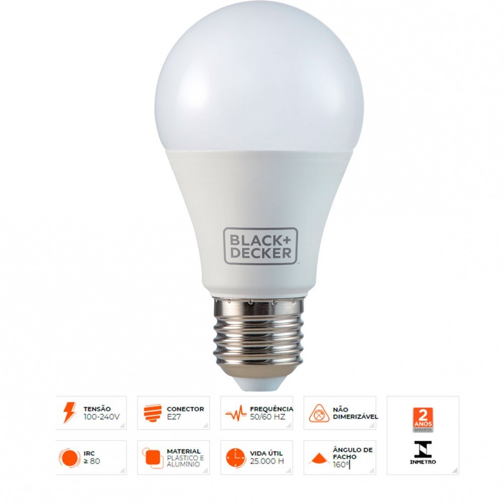 Lâmpada led bulbo 9 w E27 branca - BDA6-0800-02 Black Decker