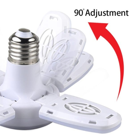 Lâmpada Bulbo LED Pétalas 28W Super Potente Dobrável Ajustável Lâmpada forte, super brilhante, decorativa, ideal para usar direto no soquete ou extensor, deixando sua casa, escritório, loja ou salão bonito como um lustre e muito mais prática e econômica. QUALIDADES DO PRODUTO: - Possui 4 abas de iluminação dobráveis, permitindo ajustar de maneira independente, conforme a sua necessidade, proporcionando o melhor ângulo para sua iluminação. - Com seu design moderno, confere muita elegância e sofisticação ao ambiente. - Lâmpadas de LED oferecem ótima iluminação e economia de até 90% na energia elétrica. - Design moderno, confere muita elegância e sofisticação ao ambiente. CARACTERÍSTICAS: - Potência: 28W (5000 lumens) - Cor da Luz: 6500K (Branco Frio) - Vida longa 40.000 horas. - Soquete: E27 (O MESMO DE LÂMPADAS COMUNS) - Alimentação: Bivolt 110/220V - Medidas Fechada: 6.5cm largura x 9.3cm altura - Medidas Aberta: 19cm largura x 9cm altura COMO USAR: *É simples e fácil de colocar* 1- Rosquear a lâmpada em um soquete comum de lâmpadas, padrão e27. 2- Acender o interruptor normalmente. CONTEÚDO DA EMBALAGEM: - 01 Lâmpada Pétala 28w