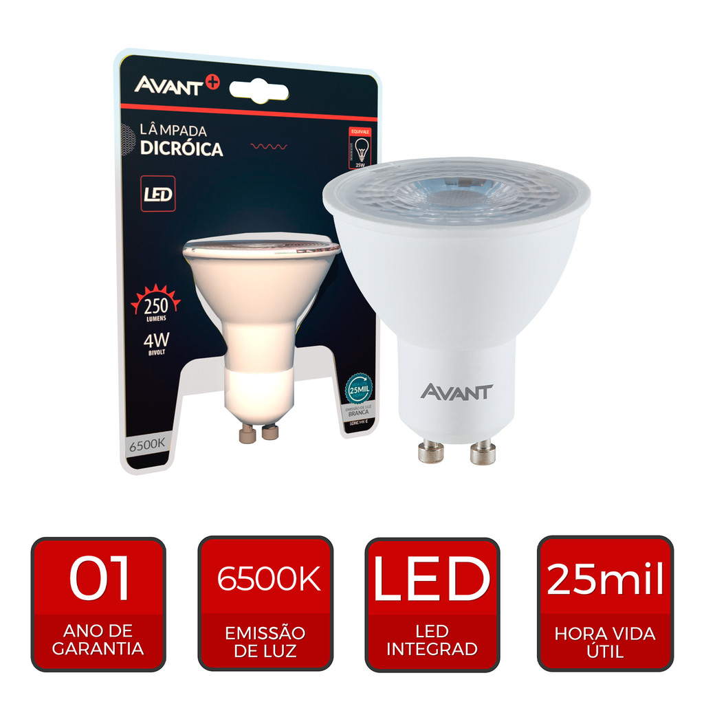 Lampada Led Dicróica MR16 4w 250lm 6500K GU10 Branco Avant