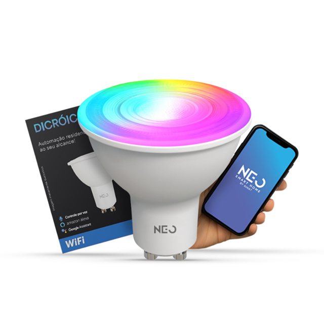 Lâmpada Led Dicróica MR16 Smart Wi-fi 2.4 GHz 5w 2700K/6500K RGB Colorido GU10 Branco Neo Avant