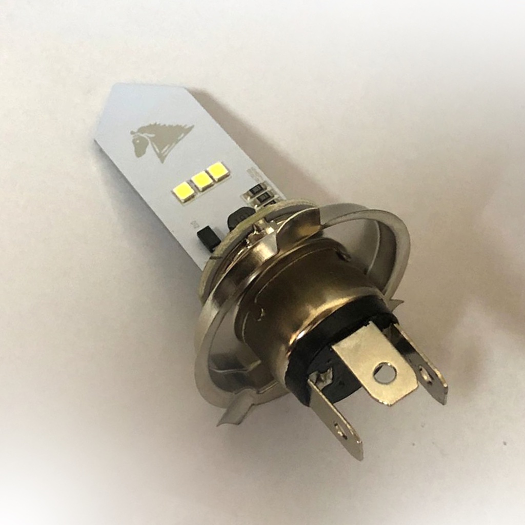Lâmpada Farol Led 12V H4 (Efeito Xenon) - Durabilidade 30.000H - Foco baixo / Alto - Economia 90% Energia - Luz branca neutra com temperatura de cor de 6500K; - Melhor reflexão das placas de sinalização, proporcionando maior segurança; - A instalação desta lâmpada não requer alterações na parte elétrica da sua moto; - Serve para todas as motos com soquete H4 e corrente continua (quando liga a chave e a lâmpada já acende antes de dar partida na moto).