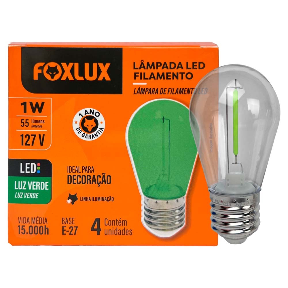 Lâmpada LED Filamento Foxlux 4 Un Verde 1W E-27 127V | iluminação temática, estilo retrô