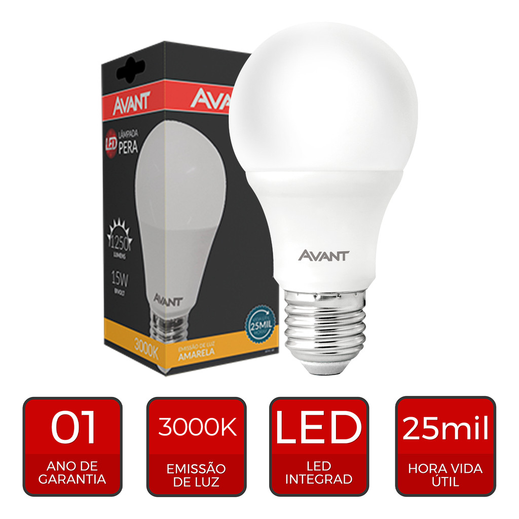 Lampada Led Pera 15w 3000K E27 110v/220v Ip20 Avant