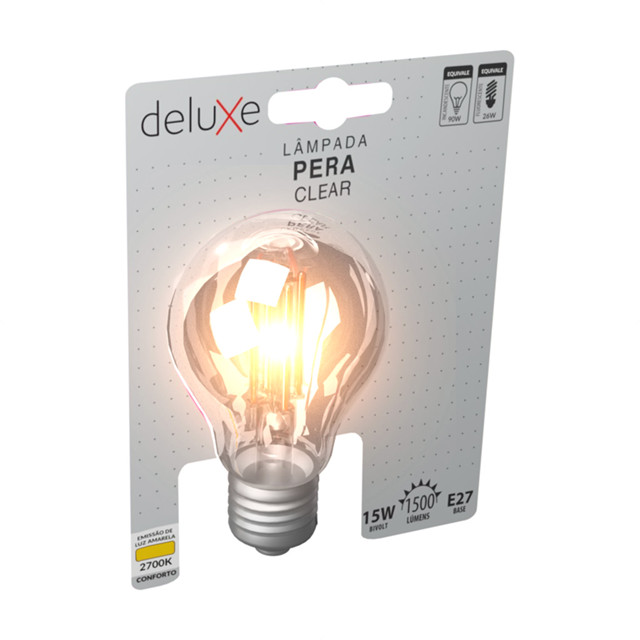 | Lampada Led Pera Filamento Clear 15W 1500lm 2700k E27 Deluxe este produto | R$ 62,90 | — | 5.0/5 | 2 |
