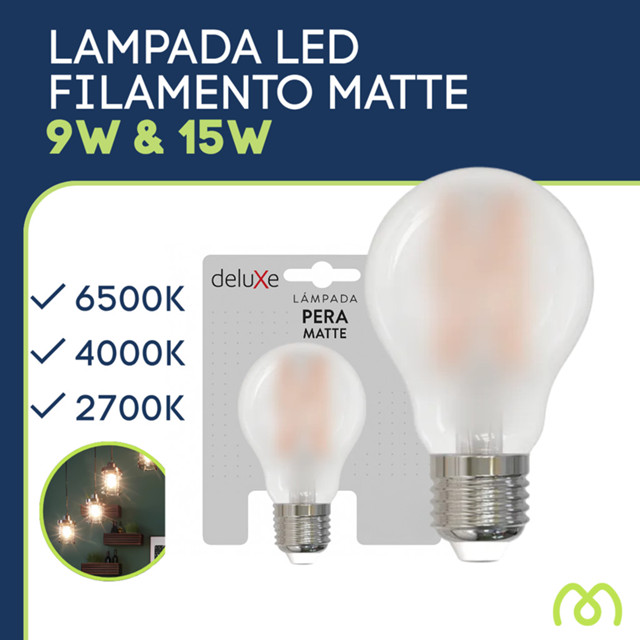 Lâmpada LED Pera Matte Filamento E27 9W 15W 6500K 4000K 2700K Branco Frio Neutro Quente Econômica
