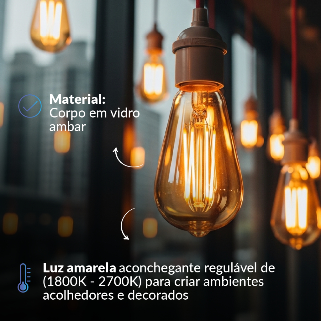 Lampada Led ST64 Smart Inteligente 6w 1800K/2700K ou RGB Colorido E27 110v/220v Bivolt Cod: 290802470-123 Avant Neo