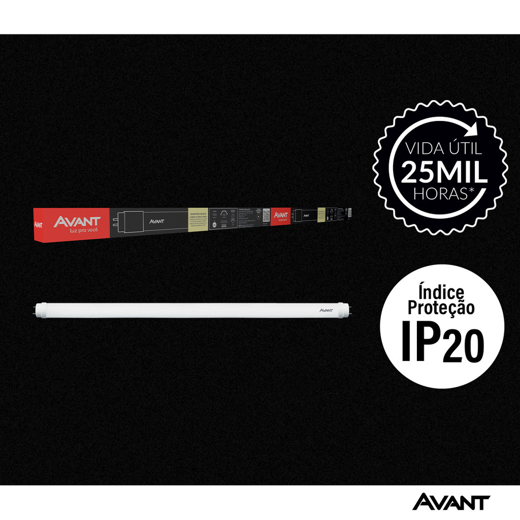Lâmpada Tubular LED T8 - 9W - 4000K (Neutro) A Lâmpada Tubular LED T8 9W da Avant, com temperatura de cor neutra (4000K), oferece iluminação eficiente e de alta qualidade, perfeita para substituir lâmpadas fluorescentes T8 de 20W. Certificada pelo Inmetro, garante segurança e desempenho superior, além de significativa economia de energia. Propriedades: Difusor: Vidro leitoso para iluminação suave e uniforme. Driver: Interno isolado para maior segurança e confiabilidade. Consumo de energia: Baixo consumo, gerando economia na conta de luz. Conector: Ligação de 1 ponta para instalação simplificada e segura. Certificação: INMETRO. Características de Funcionamento: Temperatura ambiente: -5°C a 40°C. Tensão: Bivolt automático (100V-240V). Fator de potência: =0,92. Soquete: G13. Ângulo de abertura: 240°. IRC (Índice de Reprodução de Cor): =80. Dimerizável: Não. Uso: Interno (IP20). Especificações Técnicas e Comerciais: Código: 335500873 Modelo: LED-TUB-T8-IN-VIDRO-NE4000K-200-9W-BIV-BR900-B Potência: 9W Fluxo luminoso: 900 lm Eficiência luminosa: 100 lm/W Temperatura de cor: 4000K (Neutro) Comprimento: 600mm Diâmetro: 24mm Peso: 130g Garantia: Garantia Oficial Avant de 12 meses contra defeitos de fabricação. Sobre a Marca Avant: A Avant é uma empresa líder no desenvolvimento e fabricação de soluções de iluminação LED de alta qualidade, buscando sempre inovação e sustentabilidade. Nossos produtos são projetados para oferecer eficiência, durabilidade e design moderno, atendendo às mais diversas necessidades de iluminação com a garantia de um produto confiável e seguro.