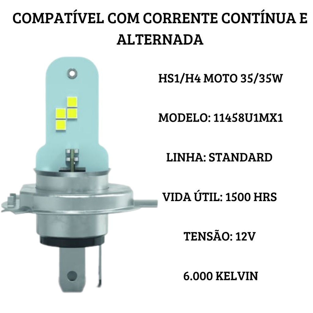 LÂMPADA UNITÁRIA HS1 / H4 ULTINON 1000 MOTO LED PHILIPS A PHILIPS ULTINON 1000 MOTO TORNA QUALQUER VIAGEM CONFORTÁVEL. OFERECE LUZ BRANCA BRILHANTE PARA DESEMPENHO IDEAL E UM DESIGN COMPACTO PARA FÁCIL INSTALAÇÃO NA MAIORIA DOS VEÍCULOS. *COMPATÍVEL COM CORRENTE CONTÍNUA E ALTERNADA* - 35/35W - LINHA: STANDARD - MODELO: 11458U1MX1 - TEMPERATURA DE COR: 6000K - TENSÃO: 12V - POTÊNCIA: 4W - VIDA ÚTIL: 1500 HRS