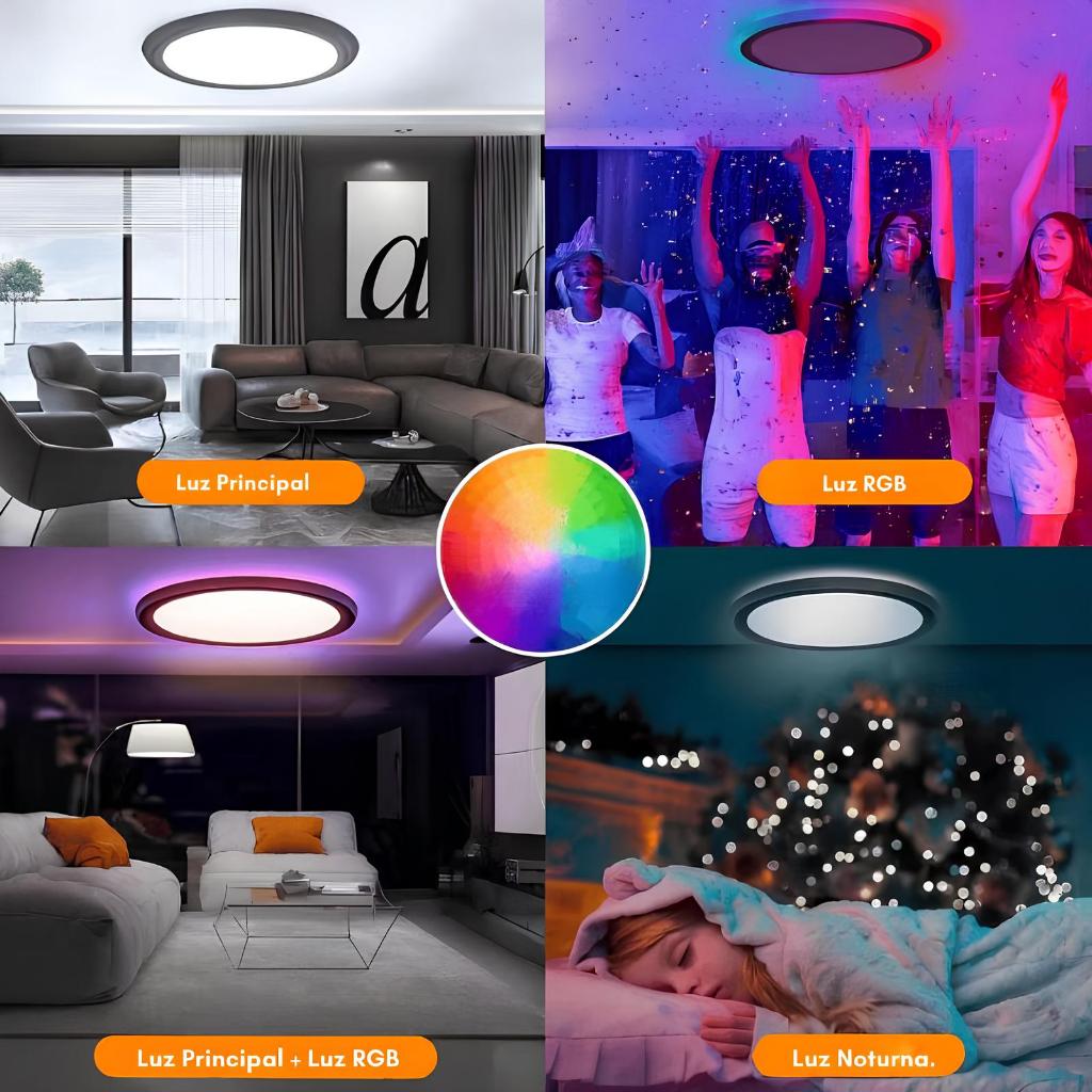 LÂMPADA RGB INTELIGENTE | Plafon LED Embutir 30cm WiFi Voz Alexa Google