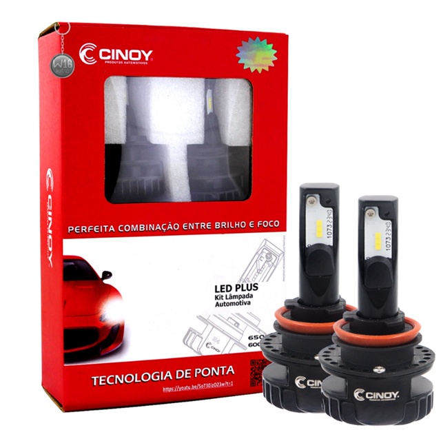 Lâmpada Super Led Cinoy Plus 6500k + Canceller A Lâmpada LED Cinoy Super Plus oferece uma experiência de direção mais segura e agradável, combinando alta luminosidade, design compacto e tecnologia inovadora. ESPECIFICAÇÕES: - Conector H1 H3 H4 H7 H8 H9 H11 H13 H16 H27 HB3 HB4 - Conexão Plug & play - Luz super branca - Longa vida útil - Eficiência energética - Alto fluxo luminoso - Design compacto - Resfriamento eficiente - Proteção contra intempéries - Temperatura de cor: 6.500K - Voltagem: 12V e 24V - Quantidade de LEDs: 6 por Lâmpada - Vida Útil de Até 30 Mil Horas CONTEÚDO DA EMBALAGEM: 1 par de Lâmpadas LED Cinoy Super Plus 1 Manual de instalação REATOR: Apesar de não estar visível nas fotos todos os modelos desse anuncio possuem reator. ERRO NO PAINEL? O modelo desse anuncio não possui cambus, em 95% dos carros não acusa erro, caso acuse basta usar um canceller. Só é possível dizer se será necessário o uso do canceller após a instalação. CONECTOR: Todos os modelos vão com os conectores, 100% Plug and play, basta conectar. COMPATIBILIDADE: Nos envie mensagem no chat para saber os carros compatíveis