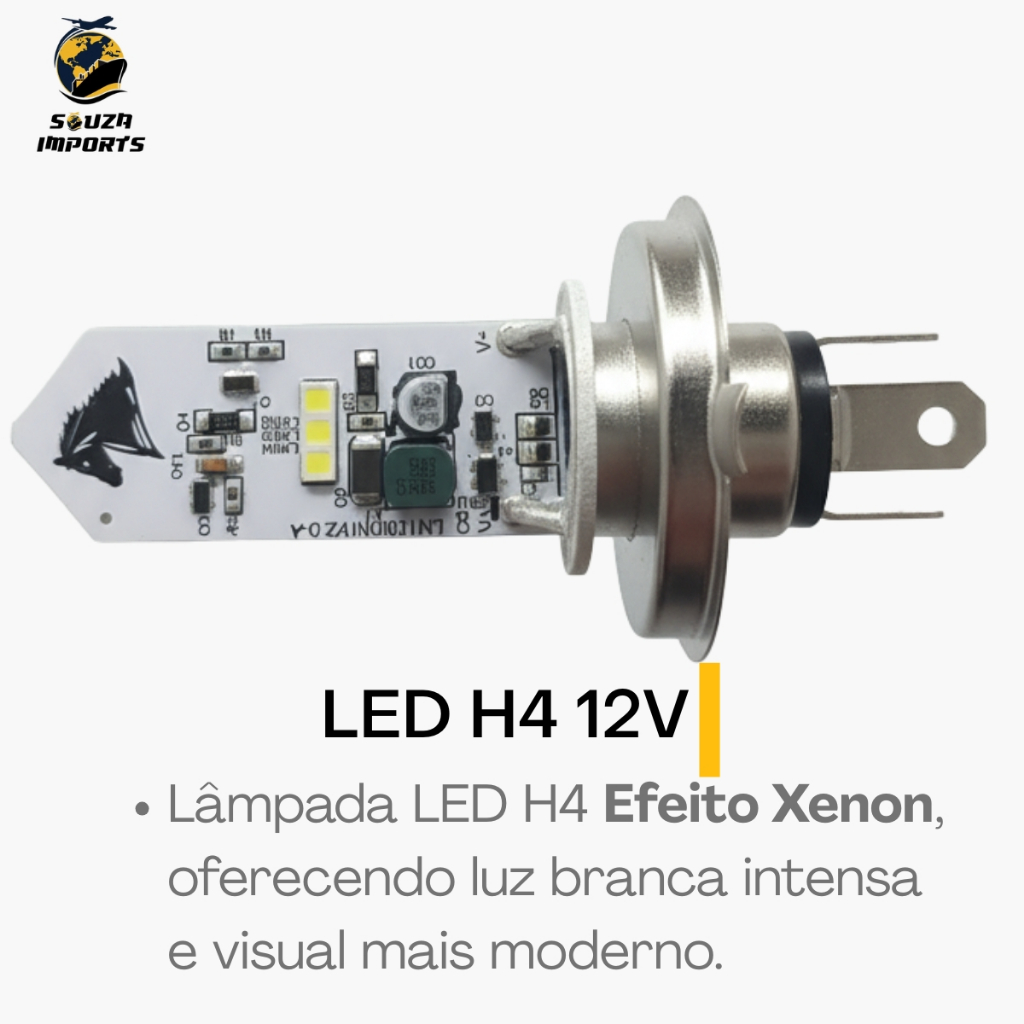 Lâmpada Farol LED H4 - Super Branca 8000K (Efeito Xenon) Transforme a iluminação da sua moto com segurança e estilo! Ideal para quem busca visibilidade superior à noite e um visual moderno. FICHA TÉCNICA: - Encaixe: H4 (Padrão universal para a maioria das motos). - Temperatura de Cor: 8000K (Luz Branca Azulada / Efeito Xenon). - Voltagem: 12V. - Tecnologia: LED COB de Alto Brilho. - Função: Luz Alta e Luz Baixa. PRINCIPAIS BENEFÍCIOS: 1. Segurança: Melhora a reflexão de placas de sinalização e buracos na via. 2. Instalação Simples: Sistema Plug & Play. Não precisa mexer na parte elétrica (sem cortar fios!). 3. Compatibilidade: Funciona perfeitamente em motos com Corrente Alternada e Contínua. 4. Economia: Baixo consumo de bateria com alta durabilidade. O QUE VEM NA CAIXA? - 01 Lâmpada LED H4 8000K. DÚVIDAS FREQUENTES: - Serve na minha moto? Se o soquete do seu farol for H4 (3 pinos), serve perfeitamente. - Precisa de reator? Não, o driver é integrado na própria lâmpada. ENVIO IMEDIATO! Garanta já a sua e rode com mais segurança.