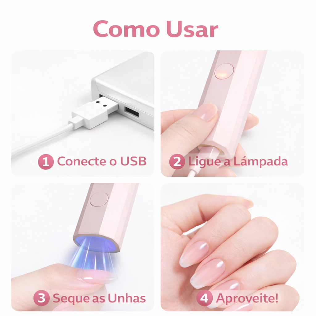 Lâmpada UV LED Mini 3W para Unhas Secagem Rápida Portátil USB