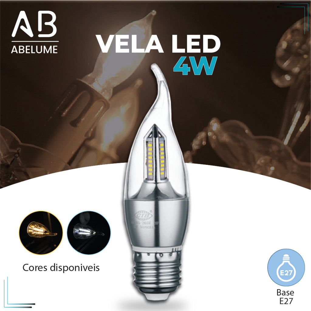 Lâmpada Vela LED para Lustre formato de fogo 4W Bico Torto E27 Pendente Modelo Moderno Branco Frio (6,500K) ou Branco Quente (3,000) 110V-220V | Bivolt