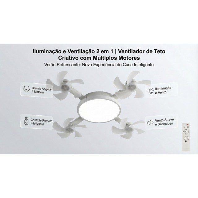 Lâmpada Ventilador de Teto Bivolt com Controle Estilo Drone Moderno e Silencioso - Envio Imediato