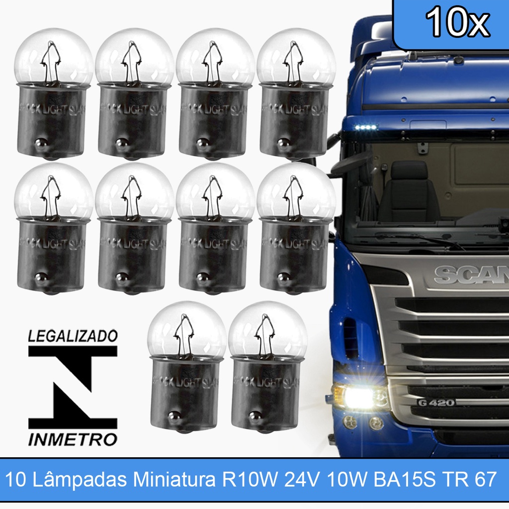 Lâmpadas Halógena Automotiva (TR 67) R10 W I 24V 10W BA15S - Para Caminhão Jogo