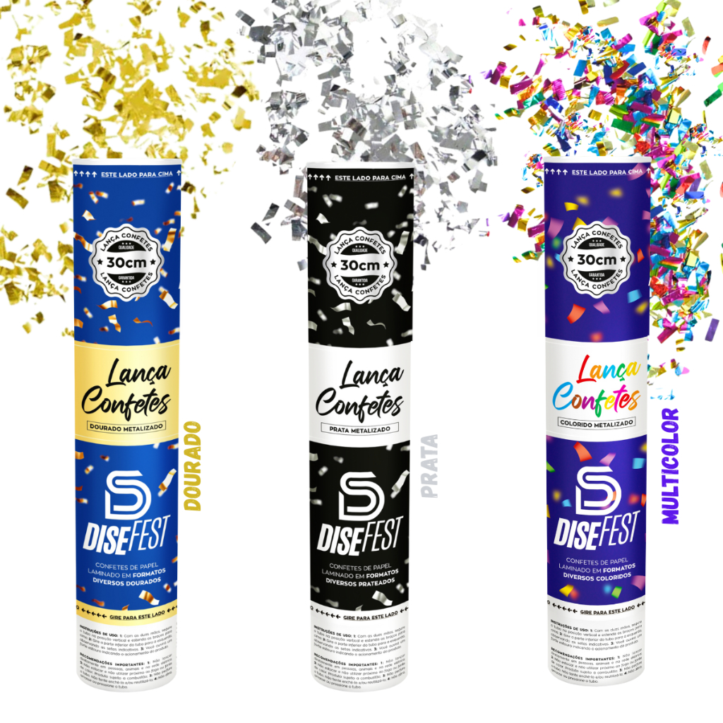 Lança Confetes Metalizado 30cm Dourado Prata Colorido Rosa Azul Festas Reveillon Aniversarios