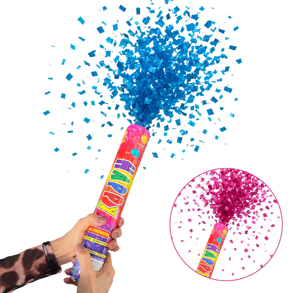 Lança Confetes Metalizado Chá Revelação Festa Azul Rosa Dourado Prata Colorido