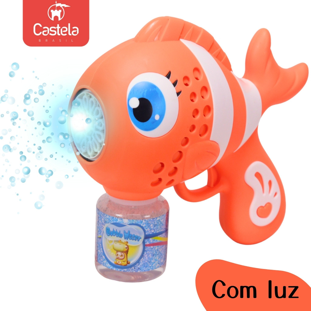 Lançador De Bolhas De Sabão Peixe com luz 10 furos - Castela