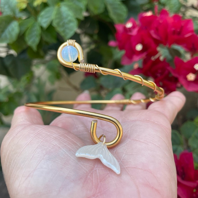 ✨Lançamento Bracelete Pedra da lua Natural Sereia Dourado Artesanal na sua Medida Praiano✨