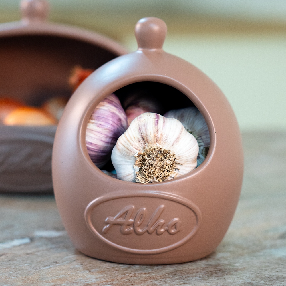 *LANÇAMENTO* Kit Condimentos Cebola Alho Feitos Ceramica Cozinha Armazenamento Alimentos Marrom Decoração Pote