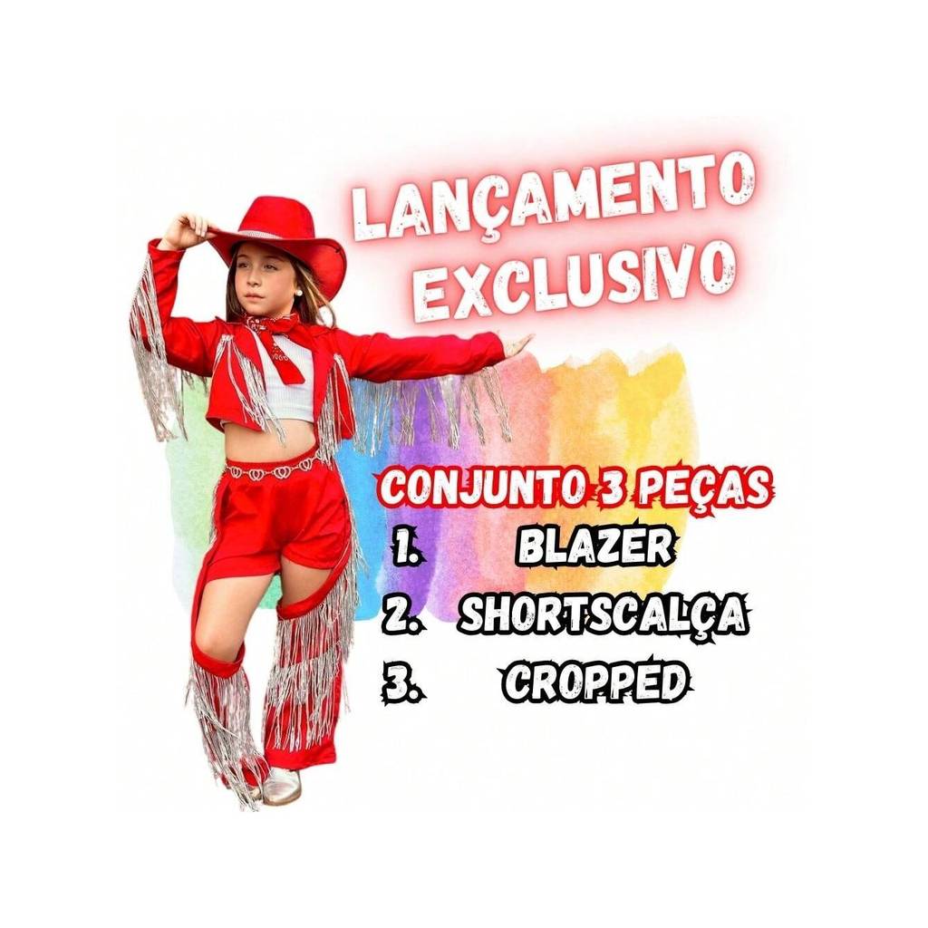 LANÇAMENTO EXCLUSIVO CONJUNTO COUNTRY ESTILOSO BLOGUEIRINHA O look perfeito para festas country, juninas e eventos cheios de estilo! O QUE ACOMPANHA O CONJUNTO: - 1 Blazer manga longa com franjas de paetê nas costas e nas mangas - 1 Cropped malha canelado, fresquinho e confortavel - 1 Calça/Shorts estilo americano com elástico na cintura com bolsos laterais e franjas de paetê como blazer DETALHES QUE FAZEM A DIFERENÇA: - Tecido do blazer e shorts: Poptoyou - Tecido do cropped: malha canelado - Estilo único, cheio de charme e brilho TAMANHOS DISPONÍVEIS (4 a 16): Confira as medidas detalhadas na tabela abaixo para escolher o tamanho ideal para a sua princesa! POR QUE COMPRAR NA DOCE CIRANDINHA? - Produtos novos e à pronta entrega - Fotos reais para garantir total confiança - Atendimento dedicado e : postamos em até 12 horas - Qualidade que só você encontra aqui EXCLUSIVIDADE DOCE CIRANDINHA Esse modelo incrível você só encontra aqui! Está com dúvidas? Nos chame no chat, respondemos rapidinho! Garanta já o look que vai conquistar todos os olhares!