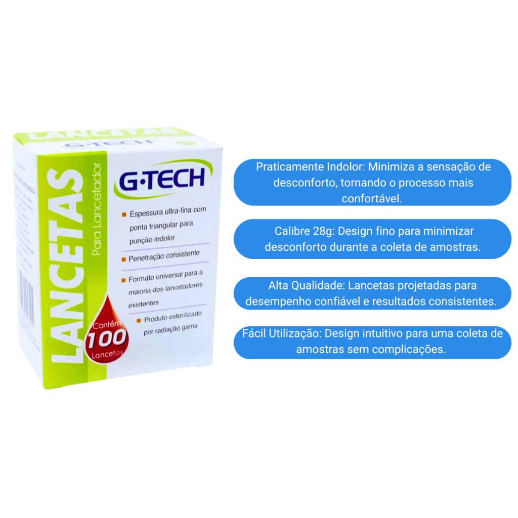 Lancetas para Teste de Glicemia 100 und. Descartáveis G-tech