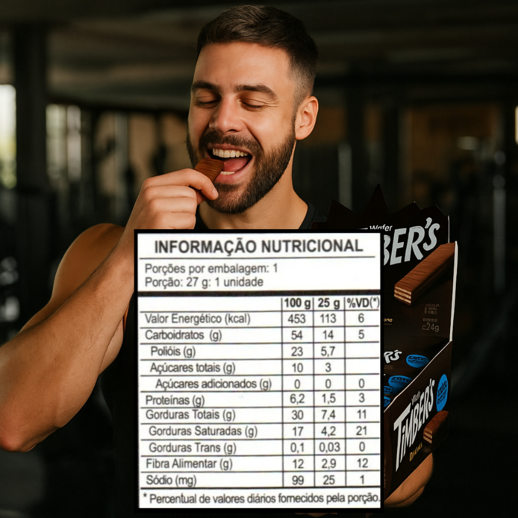 Lanche Fit Wafer Dark 70% Cacau Zero Adição de Açúcar Sabor intenso, saudável e sem culpa! O Wafer Timber’s Dark 70% Cacau é perfeito para quem ama chocolate com sabor marcante e ao mesmo tempo quer cuidar da alimentação. Com recheio e cobertura de chocolate 70% cacau, ele é zero adição de açúcar e ainda é fonte de fibras — um aliado para lanches nutritivos. - Chocolate 70% cacau - Zero adição de açúcar - Embalado individualmente - Apenas 113 kcal por unidade - Ideal para quem busca equilíbrio entre sabor e bem-estar A caixa contém 12 unidades de 27g, ideal para sua rotina saudável com mais sabor e praticidade. Potência no sabor, zero no açúcar. Compre agora!